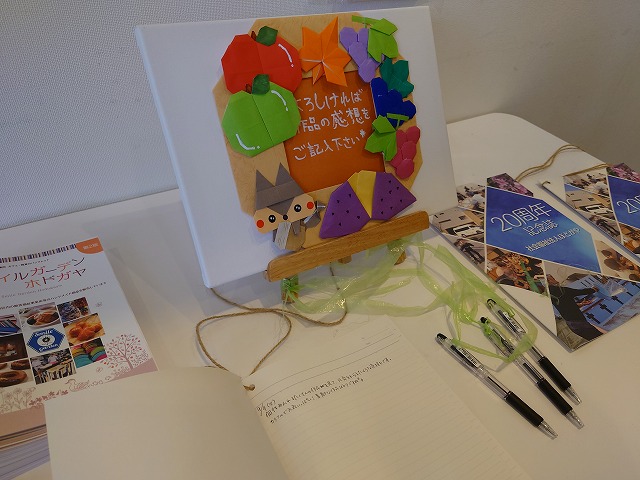 ご利用者さんが作られた秋らしく可愛い折り紙フレームとともに置かれていたのが「感想ノート」