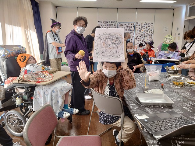後にひそかに見えているデイ4ルームでは、かぼちゃのお菓子を作っていたんですね♡